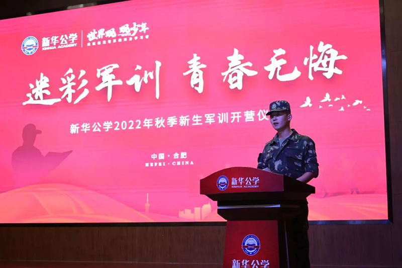 隨后新華公學(xué)總校長(zhǎng)秦新春給同學(xué)們帶來(lái)了殷切的期望和囑托。他表示,軍訓(xùn)是邁入人生新階段的第一課。因此,通過(guò)軍訓(xùn)的磨練后,他希望同學(xué)們能夠在生活上自立、學(xué)習(xí)上自主、健身上自覺(jué)、行為上自律、精神上自強(qiáng),樹立良好的學(xué)習(xí)和生活觀。