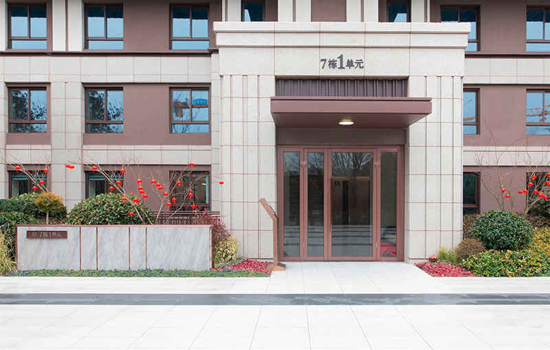 通過(guò)細(xì)節(jié)的營(yíng)造傳遞舒心溫暖,單元入戶處,為解決室內(nèi)外高差采用人性化無(wú)感緩坡入戶設(shè)計(jì),既保障室外返水不易到室內(nèi),也便于推著嬰兒車、行李箱的業(yè)主安全出入。