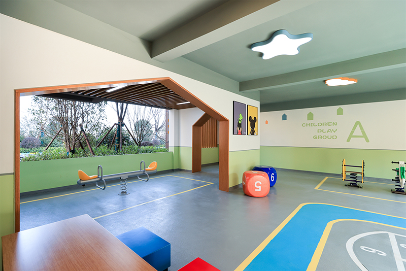 針對(duì)不同年齡段的人群,在架空層中融入了書(shū)吧、茶室、健身區(qū)域、兒童運(yùn)動(dòng)區(qū)等多種功能區(qū),滿足玩樂(lè)、運(yùn)動(dòng)、休閑會(huì)友等多元需求。