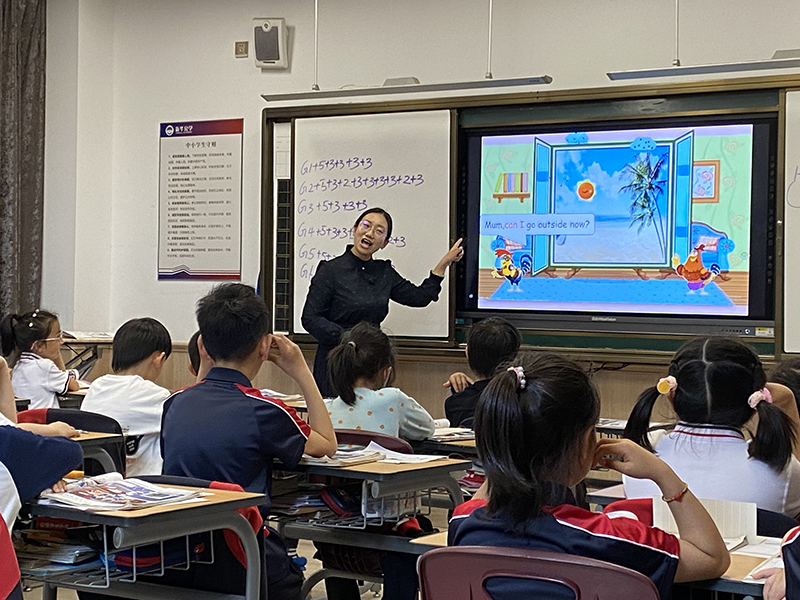 喬斌老師評(píng)課:在學(xué)習(xí)復(fù)習(xí)了所有天氣單詞后,戴老師呈現(xiàn)PEP課本中的句型Can I go outside?并增加了PU中的人物,進(jìn)行了有趣的融合,孩子們興致高昂,引導(dǎo)學(xué)生模仿人物的語氣來進(jìn)行配音對話,并在完成后及時(shí)進(jìn)行加分和獎(jiǎng)勵(lì),激發(fā)了學(xué)生的興致,發(fā)展學(xué)生的思維能力,也讓孩子們能夠在情境中學(xué)習(xí)單詞,加強(qiáng)語言的運(yùn)用。最后,戴老師對本節(jié)課的內(nèi)容進(jìn)行了鞏固和升華,拓展了一些活動(dòng)的短語,鼓勵(lì)學(xué)生們進(jìn)行不同天氣的活動(dòng)匹配,孩子們動(dòng)手動(dòng)腦,拓展了知識(shí)的廣度,也給學(xué)生們了進(jìn)行了當(dāng)堂檢測,有效檢測鞏固了本節(jié)課的知識(shí)。